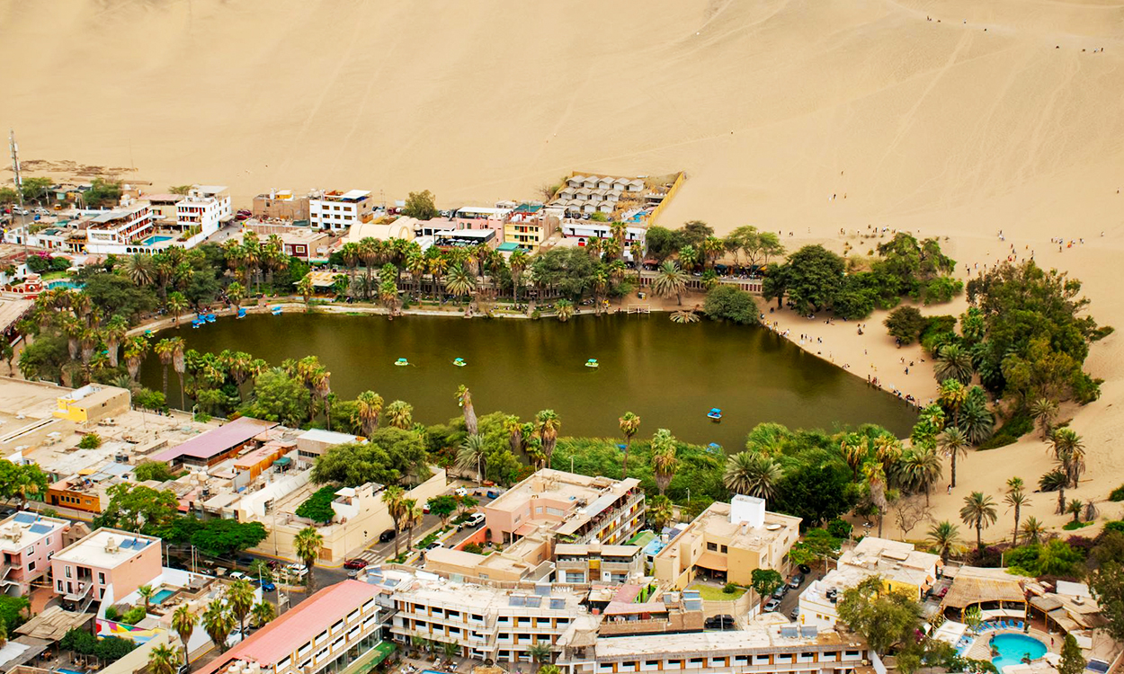 Considerado uno de los pocos oasis naturales en América, Huacachina ha fascinado a viajeros de todo el mundo por la singularidad de su paisaje: un pequeño lago rodeado de palmeras y vegetación, en pleno corazón del desierto costero. Esta postal desértica ofrece un entorno ideal tanto para la contemplación como para actividades llenas de adrenalina.