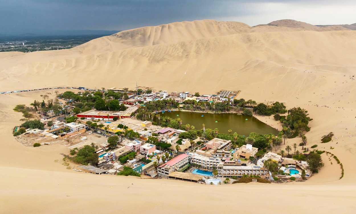 El Oasis de Huacachina es uno de los destinos más emblemáticos de Ica y un verdadero ícono del turismo de aventura en el Perú. Este oasis natural está ubicado a solo cinco minutos de la ciudad de Ica, rodeado de enormes dunas de arena dorada y un espejo de agua que resalta por su tranquilidad y belleza.