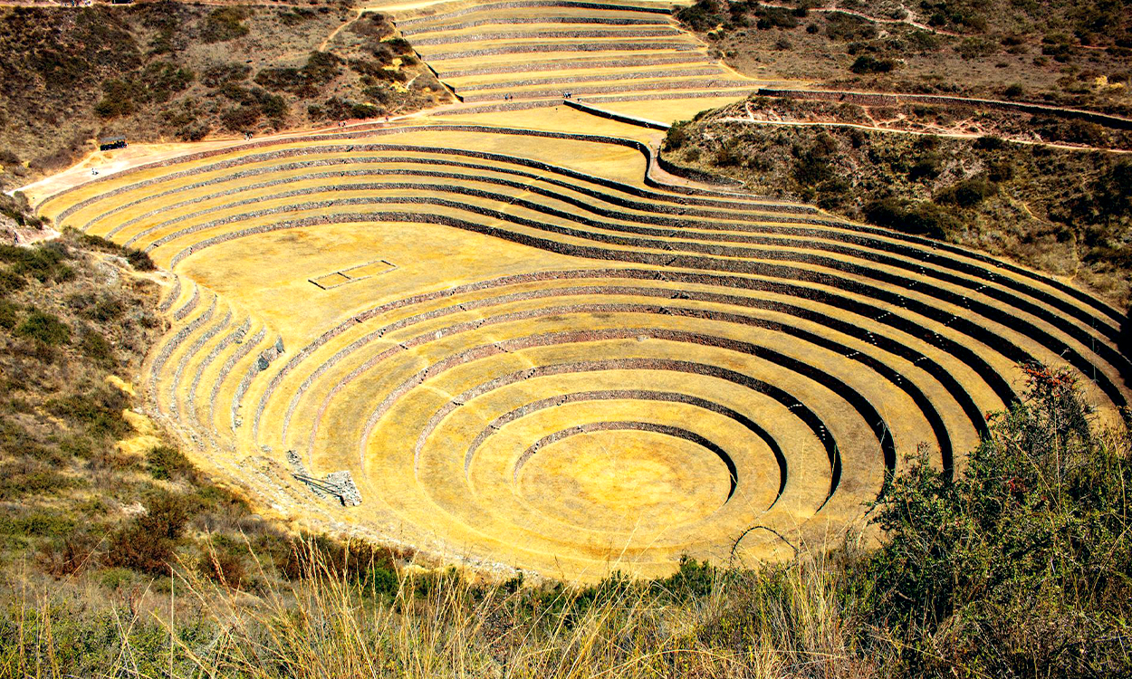 Moray, con sus andenes circulares que, se cree, funcionaban como un laboratorio agrícola inca para adaptar cultivos a diferentes condiciones climáticas.